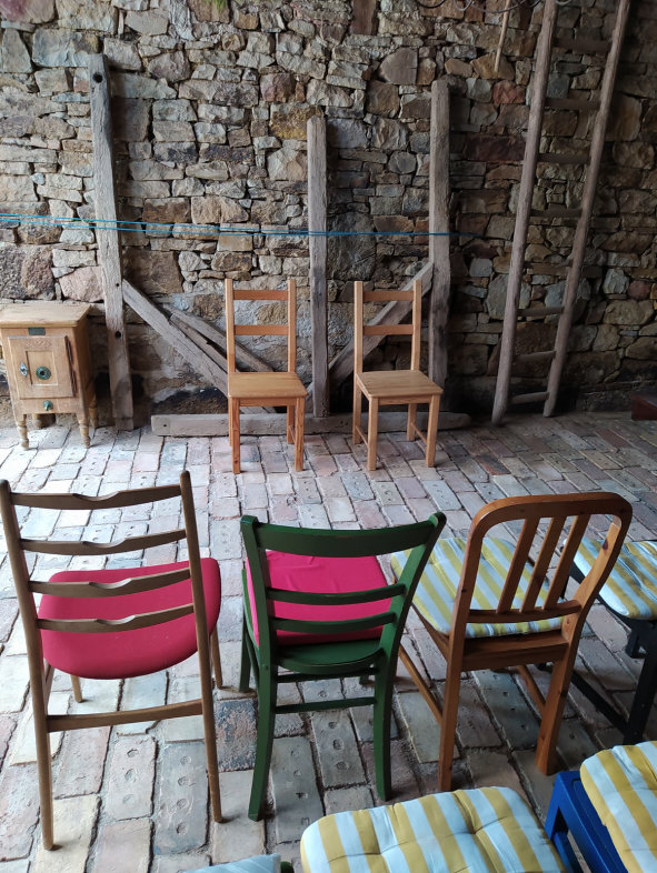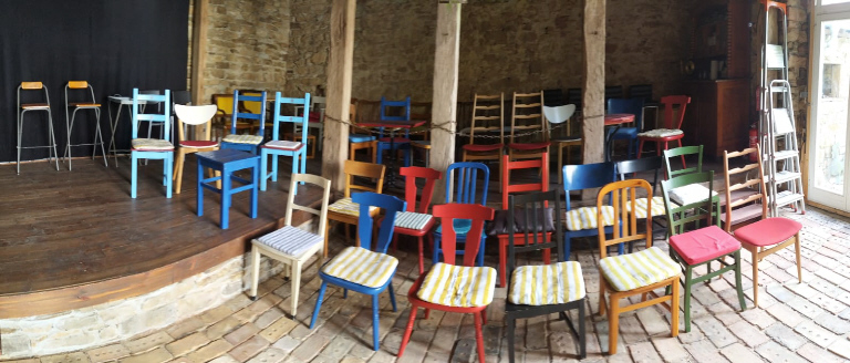 ... für »Love Letters« mit Anja Kleinhans & Christian Birko-Flemming wurde das Theater etwas umgestaltet - die Liebesbriefe wurden vor der Bruchsteinwand gelesen.